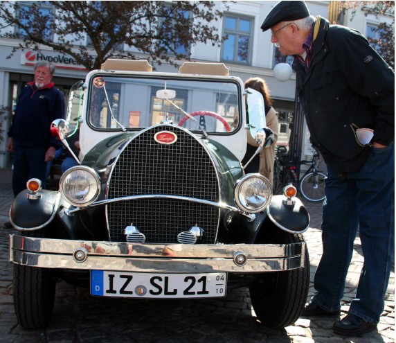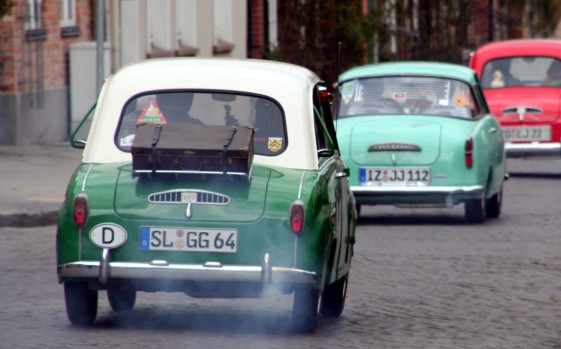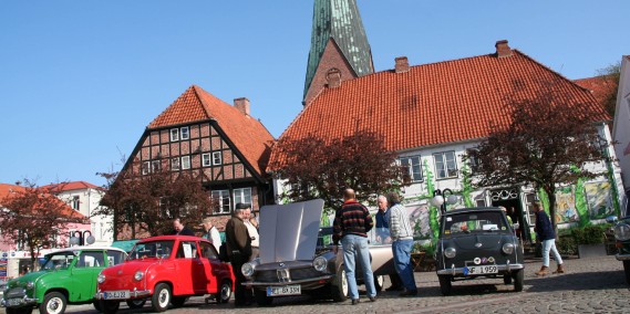 Marktplatz ein, als zwanzig Goggomobile und andere