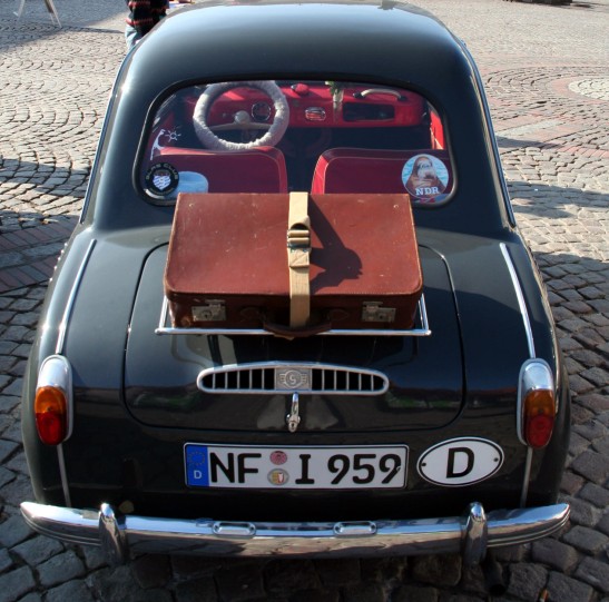 Marktplatz ein, als zwanzig Goggomobile und andere